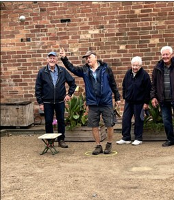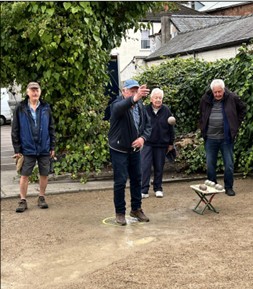 The game is normally played on hard dirt or gravel. It can be played in public areas in parks, or in dedicated facilities called boulodromes. On a rather wet Thursday afternoon last September, newsletter editor Ian Robinson caught up with members of the u3a Petanque group in the White Horse Car Park. Convenor Chris Murden commented that because of the heavy rain, at their normal start time, members had unfortunately” had to take shelter in the White Horse pub.